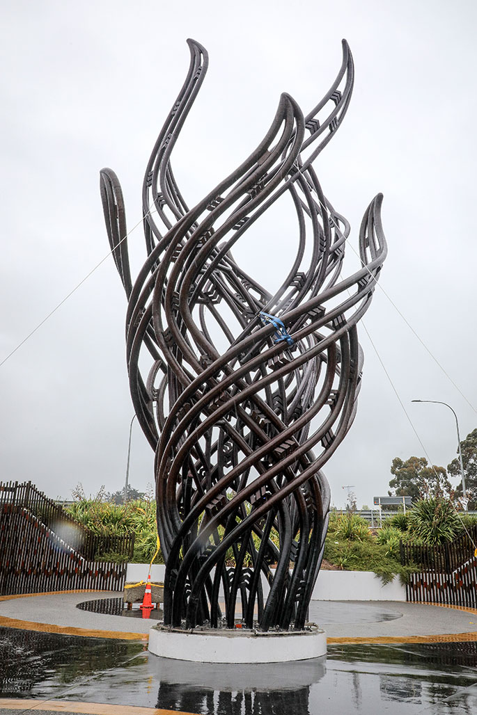 On September 15, Rotorua Lakes Council operations manager Jocelyn Mikaere said the sculpture’s inner helix had taken “more manoeuvering than expected” to get it in place as the tolerances were “very tight between the helices”.