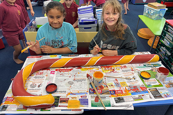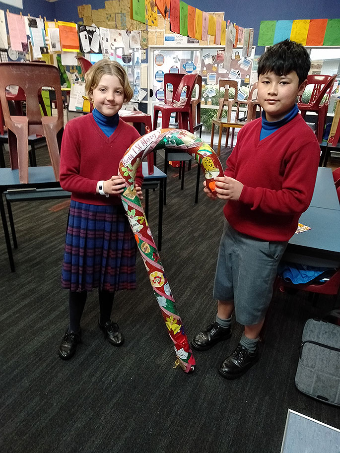 Kalani Mativa-Horn and Ryleigh King from Ngongotahā School, Room 7, decorate their candy cane.
